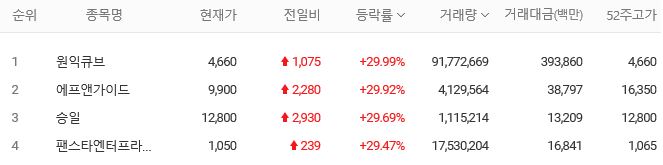 그밖에 급등주를 살펴 보도록 하겠습니다.