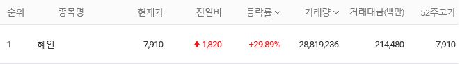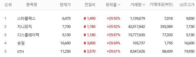 그밖에 급등주를 살펴 보도록 하겠습니다.