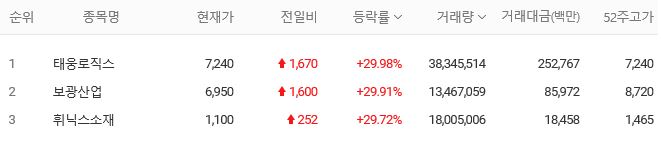 그밖에 급등주를 살펴보도록 하겠습니다.