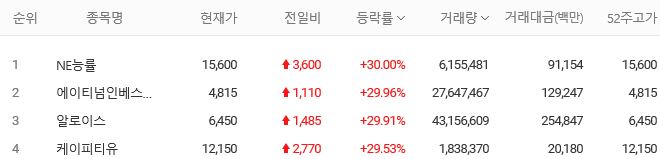 그밖에 급등주를 살펴보도록 하겠습니다.