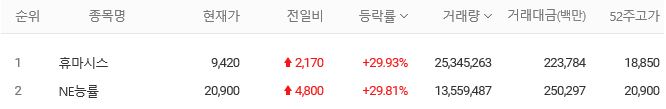 그밖에 급등주를 살펴보도록 하겠습니다.