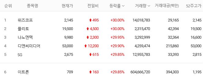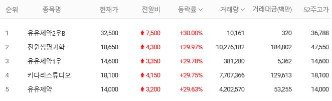 그밖에 급등주를 살펴 보도록 하겠습니다.