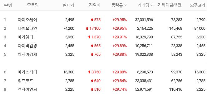 그밖에 급등주를 살펴 보도록 하겠습니다.
