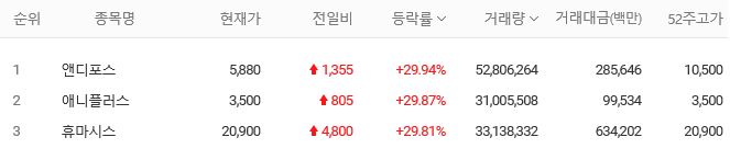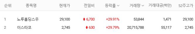 그밖에 급등주를 살펴 보도록 하겠습니다.