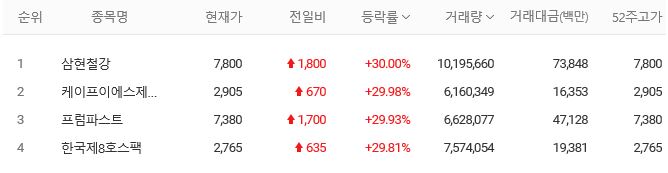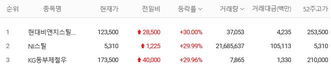 그밖에 급등주를 살펴 보도록 하겠습니다.