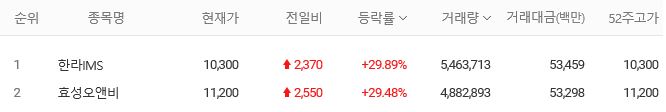 그밖에 급등주를 살펴 보도록 하겠습니다.