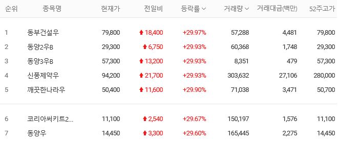 그럼 금일 상한가 종목을 알아 보도록 하겠습니다.