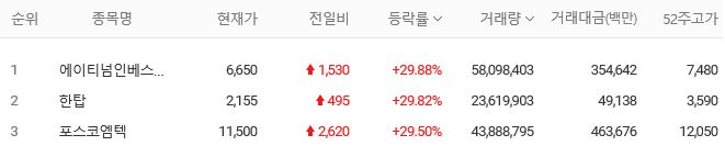 그밖에 급등주를 살펴 보도록 하겠습니다.